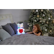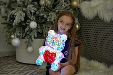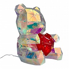 Очаровательный медвежонок высотой 32 см с 200 белыми светодиодами держит в лапках светящееся сердце, излучая мягкое романтическое сияние. Прозрачный радужный корпус создает эффект волшебного кристалла, переливаясь нежными оттенками при изменении угла обзора. Эта светодиодная фигура станет трогательным украшением спальни, гостиной или праздничного стола, добавляя ноту сердечного тепла в интерьер.